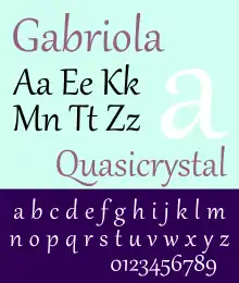Gabriola is a display typeface designed by John Hudson for Microsoft Corporation.[1] It is named after Gabriola Island, British Columbia, Canada.[1] Versions of Gabriola have been used in Windows 7, Windows 8 and Microsoft Office 2010.[2]