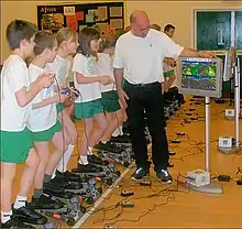 Throughout the mid 2000s, GameCube hardware sales remained far behind its direct competitor the PlayStation 2, and slightly behind the Xbox, though there were brief periods when the console would outsell both.[46][47][48] The console's family-friendly appeal and lack of support from certain third-party developers skewed the GameCube toward a younger market, which was a minority of the gaming population during the sixth generation.[49] Many third-party games popular with teenagers or adults, such as the blockbuster Grand Theft Auto series and several key first-person shooters, skipped the GameCube entirely in favor of the PlayStation 2 and Xbox.[50][51] However, many gaming journalists and analysts noted that Nintendo's primary focus on younger audiences, and its family-friendly image, was the biggest advantage and disadvantage at a time when video games were aimed at more mature audiences.[lower-alpha 11] Nintendo was successful with games aimed at a more mature audience.[61][62][63][64]