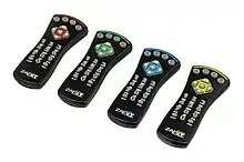 The Game Wave controllers came in 6 colors: blue, yellow, green, red, purple, and orange. Blue, yellow, green, and red come packaged with the console, whereas the purple and orange controllers could be purchased separately for an MSRP of $30.[10] Each controller color has a different IR beat frequency, allowing the console to differentiate the different controllers for multiplayer gameplay for up to 6 players (if the game in question supports it).[6][4]