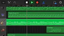GarageBand is a software application by Apple for macOS, iPadOS, and iOS devices that allows users to create music or podcasts. GarageBand was originally released for macOS in 2004 and brought to iOS in 2011. The app's music and podcast creation system enables users to create multiple tracks with pre-made MIDI keyboards, pre-made loops, an array of various instrumental effects, and voice recordings.
