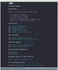 - ↑ "Statistics on the Gemini space" Archived 2021-02-11 at the Wayback Machine. Proxied gemini://gemini.bortzmeyer.org/software/lupa/stats.gmi