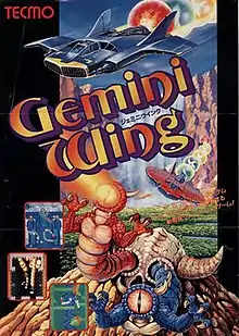 Gemini Wing is a vertically scrolling shooter created by Tecmo and released in arcades in 1987. One or two players control a futuristic aircraft flying over terrain and shooting enemies of an animalistic or insectoid design.[1][2]