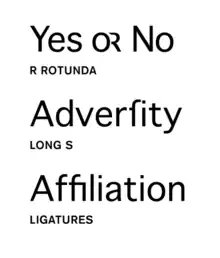 Unusually for neo-grotesque faces, later versions of Geneva include a basic set of ligatures and the archaic long s and R rotunda as alternates.
