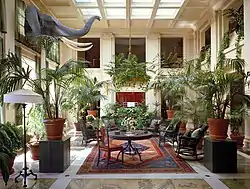 This collection includes George Eastman's house and the George Eastman Archive and Study Center.[23] Opened in April 1999,[24] the George Eastman Archive and Study Center contains Eastman's personal possessions and documents pertaining to Kodak's early history.[25] It has over half a million items[23] within its climate controlled vault.[24] The archive is accessible from the second floor of the house.[24] Items within the house itself include fragments of Eastman's coffin,[26] a mounted elephant head,[27] and an Aeolian pipe organ.[28]