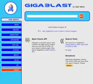 Gigablast was an American free and open-source web search engine and directory. Founded in 2000, it was an independent engine and web crawler,[6] developed and maintained by Matt Wells, a former Infoseek employee and New Mexico Tech graduate.[7] During early April 2023, the website went offline without warning and without any official statement.
