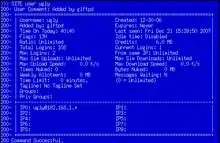 glFTPd is a freely available FTP server which runs on Unix, Linux, and BSD operating systems. It has number of features, like logins restricted by a particular set of IP addresses, transfer quotas per-user and per-group basis, and user/groups not stored in the system files, which make it attractive to private warez servers, including topsites.[1][2][3][4][5] It does have legitimate uses though—a number of web development books recommend it amongst other general purpose FTP servers,[6][7] and some Linux certification exams of SAIR required knowledge of it.[8] It can integrate with Eggdrop through IRC channels.[9]