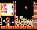 The Famicom version was re-released on iOS through the PicoPico service and Windows through Project Egg in 2021, although references to Gorbachev have been removed or censored, including a game name change to Pipeline Daisakusen.[lower-alpha 2][14][15][16] The title screen was the only part of the game where Gorbachev was depicted and the game's graphic tiles that had his name and likeliness was overwritten with other tiles that were then used to enlarge the word "大作戦" (which is the "Daisakusen" in the name) and place it beside the "パイプライン" ("pipeline") that was there in the original.[16]