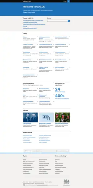 Screenshot ![]() Screenshot of gov.uk's landing page as of 2 May 2023 | |