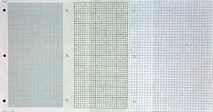 Graph paper, coordinate paper, grid paper, or squared paper is writing paper that is printed with fine lines making up a regular grid. The lines are often used as guides for plotting graphs of functions or experimental data and drawing curves. It is commonly found in mathematics and engineering education settings and in laboratory notebooks. Graph paper is available either as loose leaf paper or bound in notebooks.