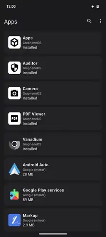 As of March 2024, GrapheneOS only officially supports Google Pixel devices.[6] By default Google apps are not installed with GrapheneOS,[6][7] but users can install a sandboxed version of Google Play Services from the "Apps" app, which is installed with GrapheneOS.[7] The sandboxed Google Play Services allows access to the Google Play Store and apps dependent on it, along with features including push notifications and in-app payments.[7][8]