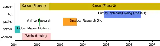 The United Devices Cancer Research Project, which began in 2001, was seeking possible drugs for the treatment of cancer using distributed computing.[2] There were around 150,000 users in the United States and 170,000 in Europe along with hundreds of thousands more in other parts of the world.