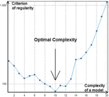 External criterion is one of the key features of GMDH. Criterion describes requirements to the model, for example minimization of Least squares. It is always calculated with a separate part of data sample that have not been used for estimation of coefficients. This makes it possible to select a model of optimal complexity according to the level of uncertainty in input data. There are several popular criteria:
