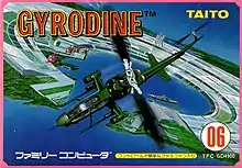 Gyrodine (ジャイロダイン, Jairodain) is a top-down, vertically scrolling shooter developed by Crux and released in arcades by Taito in 1984. Ports to the Nintendo Entertainment System / Famicom and MSX followed. The player flies a helicopter that can shoot air and ground targets.