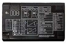 On 6 February 2012,[26] SwissMicros (previously known as RPN-Calc) introduced a miniature clone named DM-15CC approximating the size of an ID-1 credit card (88 mm × 59 mm × 7 mm). It closely emulates the functionality of the original HP-15C by running the original ROM image in an emulator on an ARM Cortex-M0-based NXP LPC1114 processor. Newer DM15 models feature a better keyboard and more RAM (LPC1115). With a modified firmware (M80 and M1B), the additional memory allows for up to 129 or even 230 registers and up to 1603 or 896 programs steps.[27][28][29][30] A DM15 Silver Edition in a titanium case is available as well in three color variants (metal, brown, blue).[31] Deviating from the original, these calculators feature a dot-matrix display, switchable fonts and clock speeds, and, based on a Silicon Labs CP2102 converter chip,[32] they come with a USB (Mini-B)[32] serial interface to exchange data with a PC etc. for backup purposes and possibly to communicate with applications (like PC-based HP-15C emulators)[30] or to update the firmware. In September 2015, SwissMicros introduced the DM15L, a version of the calculator about the same size as the original HP-15C. It still comes with a USB Mini-B connector. Powering via USB is not supported.