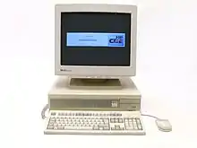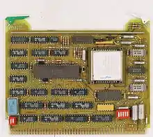 The Series 300 workstations were based around Motorola 68000-series processors, ranging from the 68010 (Model 310, introduced 1985[3]) to the Motorola 68040 (Model 38x, introduced 1991[4]). The Series 400 (introduced 1990[5]) were intended to supersede the Apollo/Domain workstations and were also based on the 68030/040. They were branded "HP Apollo" and added Apollo Domain/OS compatibility. The suffix 's' and 't' used on the Series 400 represented "Side" (as in Desk side) and "Top" (as in Desk top) model. The last two digits of the Series 400 originally was the clock frequency of the processor in MHz (e.g. 433 was 33 MHz). At introduction, the Series 400 had a socket for the MC68040, but since they were not available at the time, an emulator card with an MC68030 and additional circuitry was installed. Customers who purchased systems were given a guaranteed upgrade price of $5,000USD to the MC68040, when they became available. The Series 300 and 400 shared the same I/O interface as the Series 200. The 32-bit DIO-II bus is rated at 6 MB/s.[6]