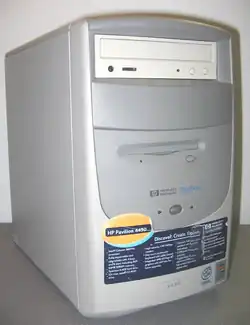 The HP Pavilion 5030, released in 1995 as the first computer in the HP Pavilion line, was technically HP's second multimedia PC designed specifically for the home market. The first was called the HP Multimedia PC; model numbers were 6100, 6140S, and 6170S. The Pavilion went on to become a popular model. Specifications included a quad-speed CD-ROM drive, Altec Lansing speakers, software for online service access, and came shipped with Windows 95. This entry-level model featured a 75 MHz Intel Pentium processor, 8 MB RAM, and an 850 MB hard drive.[2]