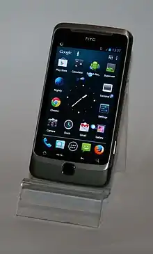 ![]() A HTC Desire Z - shown with keyboard open and closed. A custom ROM - CyanogenMod is used | |