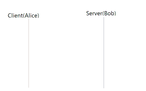 - Alice replies with an acknowledgment (ACK) message with acknowledgement number , which Bob receives and to which he doesn't need to reply.