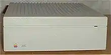The 20SC originally contained a half height 5.25" Seagate ST-225N 20MB SCSI hard drive, but was later manufactured with a full-height 3.5" MiniScribe 8425SA 20MB SCSI hard drive. The latter drive was the same size as the drive inside the Macintosh Hard Disk 20, but 10 to 15 MB over what had previously been offered by Apple for the II family. The same drive mechanism would also be offered 6 months later as a built-in drive option on the Macintosh II and SE. It had two standard Centronics 50-pin connectors, one for the System and one for daisy-chaining additional SCSI devices and a SCSI ID selection switch. An external terminator was required if it was the only SCSI device connected. The case itself could accommodate a 3.5" or 5.25" full-height hard drive mechanism. Indeed, the case design would be reused unchanged (in Platinum only) for 3 more models introduced the following year: 40SC, 80SC & 160SC (offering respective Megabytes of storage). While the transfer rates were significantly higher due to the faster SCSI bus technology, the actual transfer rate varied from computer to computer thanks to different SCSI implementation based on developing industry standards.[6]