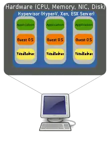 Hardware virtualization is the virtualization of computers as complete hardware platforms, certain logical abstractions of their componentry, or only the functionality required to run various operating systems. Virtualization hides the physical characteristics of a computing platform from the users, presenting instead an abstract computing platform.[1][2] At its origins, the software that controlled virtualization was called a "control program", but the terms "hypervisor" or "virtual machine monitor" became preferred over time.[3]