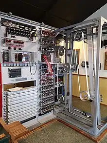 The functional specification of the machine was produced by Max Newman. The main engineering design was the work of Frank Morrell[4] at the Post Office Research Station at Dollis Hill in North London, with his colleague Tommy Flowers designing the "Combining Unit".[5] Dr C. E. Wynn-Williams from the Telecommunications Research Establishment at Malvern produced the high-speed electronic valve and relay counters.[5] Construction started in January 1943,[6] the prototype machine was delivered to Bletchley Park in June and was first used to help read current encrypted traffic soon afterwards.[7]