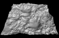 Heightmaps can be created by hand with a classical paint program or a special terrain editor. These editors visualize the terrain in 3D and allow the user to modify the surface. Normally there are tools to raise, lower, smooth or erode the terrain. Another way to create a terrain is to use a terrain generation algorithm. This can be for example a 2D simplex noise function [1] or by diffusion-limited aggregation.[2] Another method is to reconstruct heightmaps from real world data, for example using synthetic aperture radar.[3]