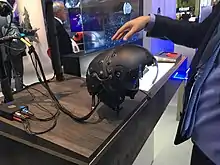 A helmet-mounted display (HMD) is a headworn device that uses displays and optics to project imagery and/or symbology to the eyes.[1][2][3] It provides visual information to the user where head protection is required – most notably in military aircraft. The display-optics assembly can be attached to a helmet or integrated into the design of the helmet. An HMD provides the pilot with situation awareness, an enhanced image of the scene, and in military applications cue weapons systems, to the direction their head is pointing. Applications which allow cuing of weapon systems are referred to as helmet-mounted sight and display (HMSD) or helmet-mounted sights (HMS).