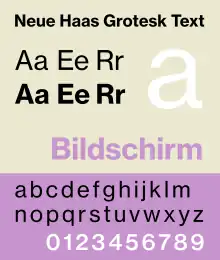 - "Neue Haas Grotesk Specimens" (PDF). Archived from the original (PDF) on 2022-06-24. Retrieved 2022-06-24.