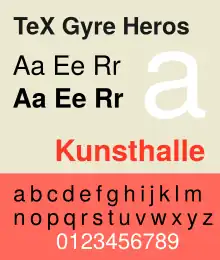 - "TeX Gyre Heros". The LaTeX font catalogue. TeX Users Group Denmark. Archived from the original on 15 August 2017. Retrieved 2 August 2017.