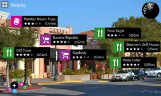 HERE City Lens is augmented reality (AR) software that gives dynamic information, through the phone's camera display, about users' surroundings[68] such as shops, restaurants, and points of interest, shown as virtual signs overlaid on or above buildings. A commercial beta version was released in 2013.[69]