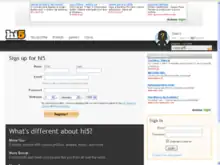 Screenshot ![]() Screenshot of Hi5's sign up/log in | |