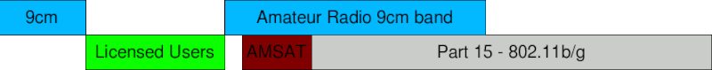 - The 9 cm band is shared with fixed services and space-to-Earth communications. Amateur radio operators using this band may not cause interference to other licensed users, including government radar stations. The low number of users tends to make this band quiet.