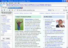 Until version 2.0, the Opera browser was called MultiTorg Opera (version 1.0) and had only a limited internal release—although it was demonstrated publicly at the Third International WWW Conference in April 1995.[3][4] It was known for its multiple document interface (MDI) and 'hotlist' (sidebar), which made browsing several pages at once much easier, as well as being the first browser to completely focus on adhering to the W3C standards.