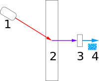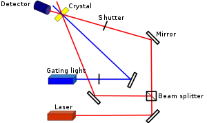 When the information is to be retrieved or read out from the hologram, only the reference beam is necessary. The beam is sent into the material in exactly the same way as when the hologram was written. As a result of the index changes in the material that were created during writing, the beam splits into two parts. One of these parts recreates the signal beam where the information is stored. Something like a CCD camera can be used to convert this information into a more usable form.