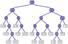 In the standard Huffman coding problem, it is assumed that any codeword can correspond to any input symbol. In the alphabetic version, the alphabetic order of inputs and outputs must be identical. Thus, for example, could not be assigned code , but instead should be assigned either or . This is also known as the Hu–Tucker problem, after T. C. Hu and Alan Tucker, the authors of the paper presenting the first -time solution to this optimal binary alphabetic problem,[9] which has some similarities to Huffman algorithm, but is not a variation of this algorithm. A later method, the Garsia–Wachs algorithm of Adriano Garsia and Michelle L. Wachs (1977), uses simpler logic to perform the same comparisons in the same total time bound. These optimal alphabetic binary trees are often used as binary search trees.[10]