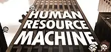 Human Resource Machine is a visual programming-based puzzle video game developed by Tomorrow Corporation. The game was released for Microsoft Windows, OS X and Wii U in 2015, being additionally released for Linux in March 2016, for iOS in June 2016, for Android in December 2016[1] and for the Nintendo Switch in March 2017.[2] Human Resource Machine uses the concept of a corporate office worker assigned to perform tasks that involve moving objects between an inbox, an outbox, and to and from storage areas as a metaphor for assembly language concepts. The player works through some forty puzzles in constructing a program to complete a specific task.