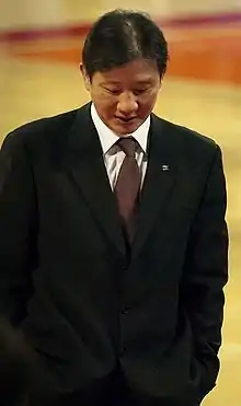 Hur Jae (born September 28, 1965) is a South Korean retired basketball coach and former player. His playing and coaching career combined spanned over three decades, beginning during the semi-professional era and coinciding with the establishment of the professional Korean Basketball League (KBL).[1] As one of the most recognizable domestic sports stars of the late 1980s to early 2000s, Hur was nicknamed "The President of Korean Basketball" (Korean: 농구대통령) by Korean fans and the media.[2][3] At the 1988 Summer Olympics in Seoul, he took the Athlete's Oath with handball player Son Mi-na.