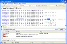 HxD is a freeware hex editor, disk editor, and memory editor developed by Maël Hörz for Windows. It can open files larger than 4 GiB and open and edit the raw contents of disk drives, as well as display and edit the memory used by running processes. Among other features, it can calculate various checksums, compare files, or shred files.[1]