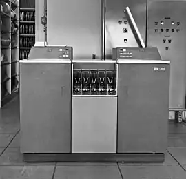 The IBM 2540 is a punched-card computer peripheral manufactured by IBM Corporation for use of System/360 and later computer systems. The 2540 was designed by IBM's Data Processing Division in Rochester, Minnesota, and was introduced in 1965.[1] The 2540 can read punched-cards at 1000 cards per minute (CPM) and punch at 300 CPM. The 2540 is based on the design of the older, slightly slower, 1402.