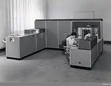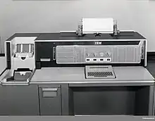 The IBM 305 RAMAC was the first commercial computer that used a moving-head hard disk drive (magnetic disk storage) for secondary storage.[1] The system was publicly announced on September 14, 1956,[2][3] with test units already installed at the U.S. Navy and at private corporations.[2] RAMAC stood for "Random Access Method of Accounting and Control",[4] as its design was motivated by the need for real-time accounting in business.[5]