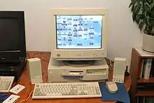 The PC 350, introduced over 1994 to 1995,[1] was a middle-class model, having the same motherboard as the PC 330 in a much roomier case with additional drive bays. Processors ranged from the 486DX2-50, 486SX-25, 486DX4-100 to the Pentium 200. It had, depending on the sub-model up to 5 ISA and/or 3 PCI expansion slots and five (2 external 5.25", 1 external and 1 internal 3.5") drive bays. Like its smaller cousin, in its latest version it had 1 DIMM-168 and 4 SIMM-72 RAM slots, and featured an IBM SurePath BIOS.