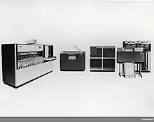 The IBM 1285 is an online optical reader that is used to read printed paper tapes from cash registers or adding machines. It was developed by IBM Endicott and manufactured by IBM Rochester.[1] The IBM 1285 attaches to an IBM 1401, 1440, 1460 or System/360. It has a small round screen to display characters being read and it has a keyboard to enter header information and to optionally enter character corrections for rejected characters. It can read a 200 ft (61 m) roll or paper tape in three-and-a half minutes, reading data at speeds of up to 3000 lines per minute. It can mark the tape with a dot to indicate unreadable characters, so they can be rekeyed later. It users System/360 SLT circuitry and scans with an electronic beam of light called a "flying spot".[21]