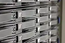 Highly scalable tape library supporting Linear Tape-Open (LTO) or TS11x0 drives. Can scale up to 16 frames, 192 drives and over 20,000 cartridges capacity per library string or up to 2,700 drives per library complex.[36]