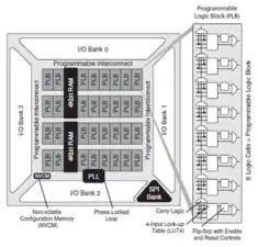 iCE is the brand name used for a family of low-power field-programmable gate arrays (FPGAs) produced by Lattice Semiconductor. Parts in the family are marketed with the "world's smallest FPGA" tagline, and are intended for use in portable and battery-powered devices (such as mobile phones),[1] where they would be used to offload tasks from the device's main processor or system on chip. By doing so, the main processor and its peripherals can enter a low-power state or be powered off entirely, potentially increasing battery life.