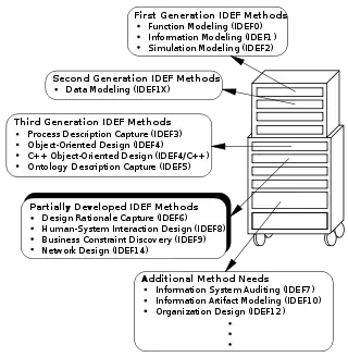 The methods IDEF7, IDEF10, IDEF11, IDEF 12 and IDEF13 haven't been developed any further than their initial definition.[10]