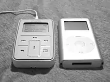 Portable MP3 players had existed since the mid-1990s, but Apple found existing digital music players "big and clunky or small and useless" with user interfaces that were "unbelievably awful".[10] They also identified weaknesses in existing models' attempt to negotiate the trade-off between capacity and portability; flash memory-based players held too few songs, while the hard drive based models were too big and heavy. To address these deficits, the company decided to develop its own MP3 player.[11]