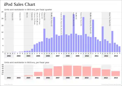 108. Costello, Sam (September 2012). "Total Number of iPods Sold All-Time". About.com. Archived from the original on March 28, 2013. Retrieved March 19, 2013.