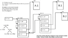 ISO 9660 traces its roots to the High Sierra Format,[2] which arranged file information in a dense, sequential layout to minimize nonsequential access by using a hierarchical (eight levels of directories deep) tree file system arrangement, similar to UNIX and FAT. To facilitate cross platform compatibility, it defined a minimal set of common file attributes (directory or ordinary file and time of recording) and name attributes (name, extension, and version), and used a separate system use area where future optional extensions for each file may be specified. High Sierra was adopted in December 1986 (with changes) as an international standard by Ecma International as ECMA-119[3] and submitted for fast tracking to the ISO, where it was eventually accepted as ISO 9660:1988.[4] Subsequent amendments to the standard were published in 2013 and 2020.