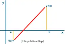 - [Interpolation Step] Calculate the bisection and the regula falsi points: and ;