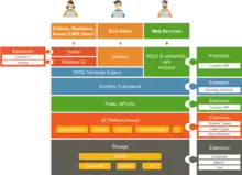 eZ Platform is built on the Symfony Full Stack Framework.[7] Since eZ Platform is based on the complete framework, developers can integrate any Symfony extension (i.e. bundle) into eZ Platform to add more functionality and, vice versa, Symfony developers can integrate eZ Platform into their Symfony projects. eZ Platform itself is—in Symfony terms—a number of bundles standing on top of Symfony which add features[8] such as:
